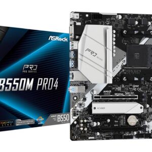 Asrock B550M Pro4. Processor manufacturer: AMD, Processor socket: Socket AM4, Compatible processor series: AMD Ryzen 3000 Series. Supported memory types: DDR4-SDRAM, Maximum internal memory: 128 GB, Memory slots type: DIMM. Supported storage drive interfaces: M.2, SATA III, Supported storage drive types: HDD & SSD, RAID levels: 0, 1, 10. Parallel processing technology support: CrossFireX, Quad-GPU CrossFireX, Maximum resolution: 5120 x 2880 pixels. Ethernet interface type: Gigabit Ethernet, LAN controller: Realtek RTL8111H