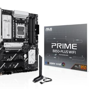 ASUS PRIME B850-PLUS WIFI. Processor manufacturer: AMD, Processor socket: Socket AM5, Compatible processor series: AMD Ryzen 7000 Series, AMD Ryzen 8000 Series, AMD Ryzen 9000 Series. Supported memory types: DDR5-SDRAM, Maximum internal memory: 256 GB, Memory slots type: DIMM. Supported storage drive interfaces: M.2, SATA III, Supported storage drive types: HDD & SSD, RAID levels: 0, 1, 5, 10. Ethernet interface type: 2.5 Gigabit Ethernet, Top Wi-Fi standard: Wi-Fi 6E (802.11ax). Component for: PC, Motherboard form factor: ATX, Motherboard chipset family: AMD