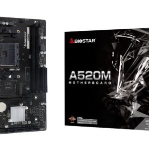 Biostar A520MHP. Processor manufacturer: AMD, Processor socket: Socket AM4, Compatible processor series: AMD Ryzen 3000 Series, AMD Ryzen 4000 Series, AMD Ryzen 5000 Series. Supported memory types: DDR4-SDRAM, Maximum internal memory: 64 GB, Memory slots type: SO-DIMM. Supported storage drive interfaces: M.2, PCI Express 3.0, SATA III, Supported storage drive types: HDD & SSD, RAID levels: 0, 1, 10. Ethernet interface type: Gigabit Ethernet, LAN controller: Realtek RTL8111H. Component for: PC, Motherboard form factor: micro ATX, Motherboard chipset family: AMD
