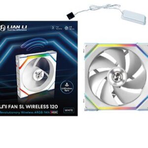 Lian Li UNI FAN SL Wireless 120. Type: Fan, Fan diameter: 12 cm, Maximum air pressure: 2.44 mmH2O, Bearing type: Fluid Dynamic Bearing (FDB). Voltage: 5 – 12 V. Product colour: White