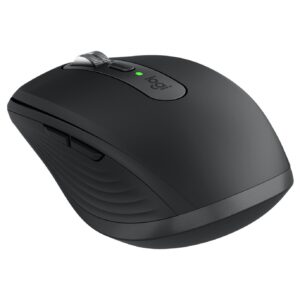 Logitech MX Anywhere 3 for Business. Form factor: Right-hand. Movement detection technology: Laser, Device interface: Bluetooth, Movement resolution: 4000 DPI, Buttons type: Pressed buttons, Buttons quantity: 6, Scroll type: Wheel. Power source: Batteries. Works on any surface. Product colour: Graphite