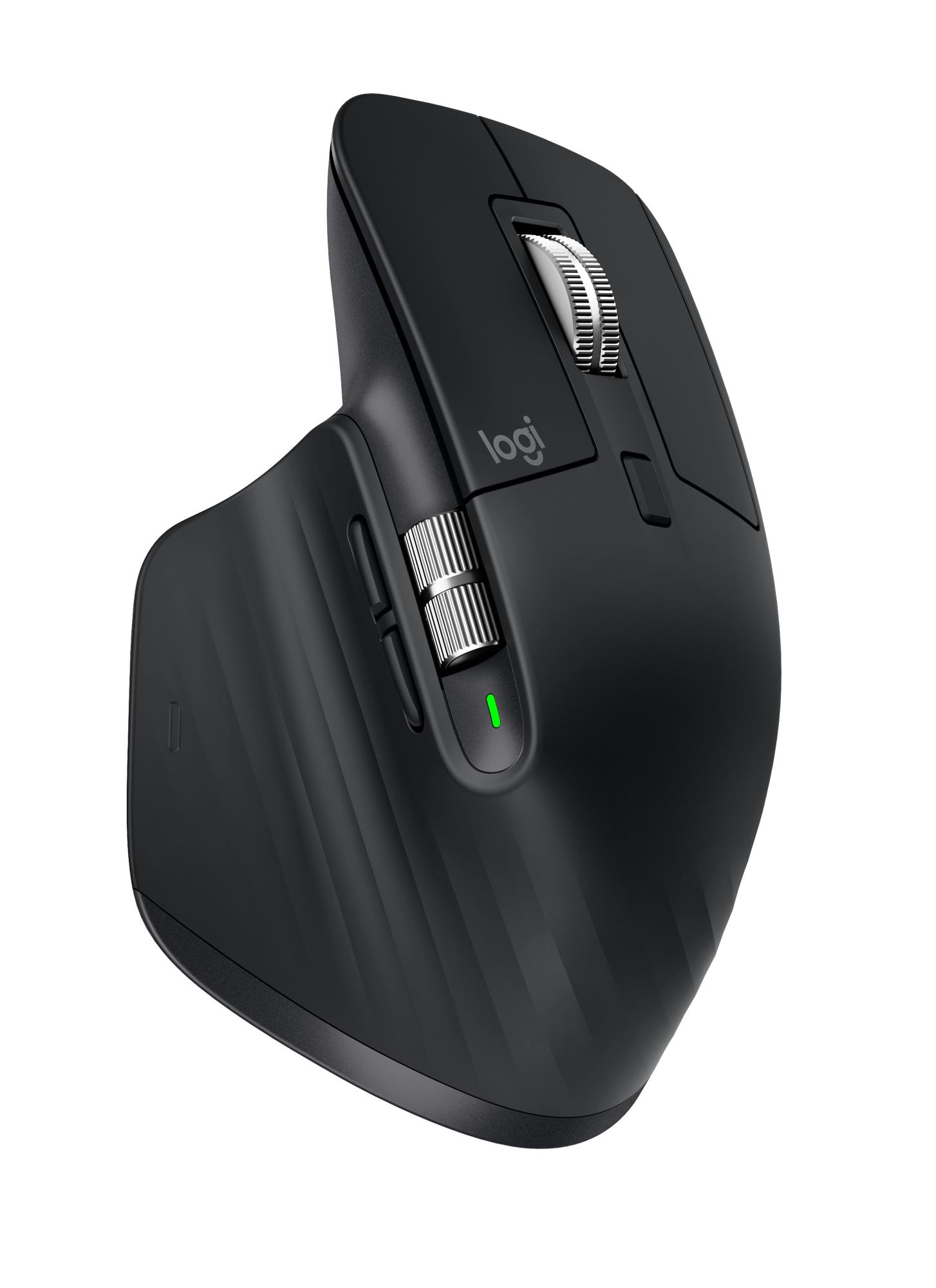 Logitech MX Master 3 Advanced Wireless Mouse. Form factor: Right-hand. Movement detection technology: Laser, Device interface: RF Wireless + Bluetooth, Movement resolution: 4000 DPI, Buttons type: Pressed buttons, Buttons quantity: 7, Scroll type: Wheel. Power source: Batteries. Product colour: Black