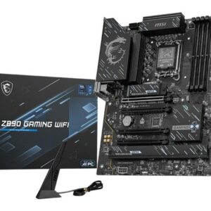 MSI Z890 GAMING WIFI. Processor manufacturer: Intel, Processor socket: LGA 1851 (Socket V1), Compatible processor series: Intel Core Ultra (Series 2). Supported memory types: DDR5-SDRAM, Maximum internal memory: 256 GB, Memory slots type: DIMM. Supported storage drive interfaces: M.2, SATA III, Supported storage drive types: HDD & SSD, RAID levels: 0, 1, 5, 10. Ethernet interface type: 5 Gigabit Ethernet, Top Wi-Fi standard: Wi-Fi 7 (802.11be), Wi-Fi standards: 802.11a, 802.11b, 802.11g, Wi-Fi 4 (802.11n), Wi-Fi 5 (802.11ac), Wi-Fi 6 (802.11ax), Wi-Fi 6E…. Component for: PC, Motherboard form factor: ATX, Motherboard chipset family: Intel
