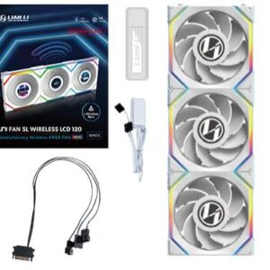Lian Li UNI FAN SL Wireless LCD 120 Reverse Blade. Тип: Вентилятор, Диаметр вентилятора: 12 cm, Максимальное давление воздуха: 2,1 mmH2O, Тип подшипника: Fluid Dynamic Bearing (FDB). Напряжение: 5 — 12 V. Цвет товара: Белый