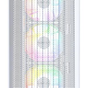 Передняя панель выполнена в виде сетки с пористостью до 33%, что обеспечивает отличный воздушный поток и стабильную температуру внутри корпуса. В комплект входят четыре установленных ARGB-вентилятора с 25 встроенными режимами подсветки, которые можно переключать кнопкой или синхронизировать с материнской платой.